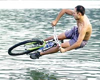 Macaristan'da aşırı sıcak hava nedeniyle "hayal güçlerini zorlayan" insanlar, yeni etkinlikler buldu. Budapeşte yakınlarındaki Orfue'daki göle, sadece kıyafetleri ile değil, bisikletleriyle de atlayan çılgın gençler, serinlemenin tadını çıkarttı. Bisikletçi Zoltan Sinka, bisikleti ile hızla giderken, havanın yüzüne çarpmasının serinlemesi için yeterli olmadığını ama, uçarak göle atlayınca sıcakların kendisine vız geldiğini açıkladı.