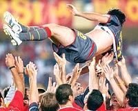 SUAT, 300 MİLYAR ALACAK G.SARAY'ın unutulmaz oyuncusu Suat Kaya, dün yapılan muhteşem bir jübile maçıyla faal futbol yaşamını noktaladı. Suat'ı, son maçında Ali Sami Yen'e gelen 10 bin taraftar uğurlarken, maçta Cimbom, Federasyon Karması'nı 2-1yendi. 41. dakikaya kadar Karma'da yer alan Suat, daha sonra G.Saray'a geçti. 46. dakikada sahayı omuzlarda terkeden emektar oyuncuyu, arkadaşları havalara atarak yolcu etti. Federasyon Karması'nda birçok milli yıldız forma giyerken, G.Saray'da Hagi de oynadı. Maçtan sonra havai fişek gösterisi yapıldı. Suat'a hasılat ve televizyon geliriyle birlikte 300 milyar lira kaldığı bildirildi.