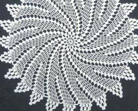 Oda takımı 21 cm çapındaki örtüye ortadan başlayın ve dört direkli dolguları kaydırarak devam edin. Sıra tekrarı ile istediğiniz kadar büyütün. Çevresini dilimli olarak tamamlayın. 60 numara iplik kullanın.