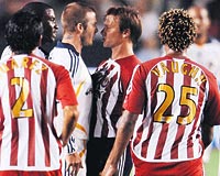 ÇOK GERGİNİM ÖZÜR DİLİYORUM MAÇIN 45. dakikasında Los Angeles Galaxy'de Harmse, Chivas USA'da ise Zotinca kırmızı kartla oyun dışı kalırken, David Beckham yine rakip futbolcularla gerginlik yaşadı. Yıldız oyuncu, maçtan sonra yaptığı açıklamada, "Takımımın ligde son 4 maçını kaybetmesi benim üstümde büyük baskı oluşturdu. Rakip oyuncu da bana çok sert girince ben de kendimi tutamadım. Herkesten özür dilerim" dedi.