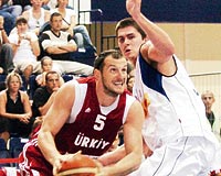 İŞİ İKİNCİ YARI BİTİRDİK 6. EFES World Cup yarı finalinde büyük bir çekişmeye sahne olan mücadelede Ay-Yıldızlılar, Sırbistan'ı ikinci yarıdaki etkili oyunuyla yenerek adını finale yazdırdı: 91-80. İlk periyot 17-17, devre ise 40-40 eşitlikle geçilirken 3. periyot, Türkiye'nin 67- 59 üstünlüğüyle kapandı. Maçın son periyoduna Engin'in isabetli 3'lüğüyle başlayan Türkiye, maçtaki en yüksek farkı yakaladı: 70-59. Milliler, maçta son 1 dakikaya Hidayet'in attığı 3'lükle 89-77 önde girdi. Son saniyeler, karşılıklı basketlerle geçildi ve Türkiye, Sırbistan'ı 91-80 yendi. Bu sonuçla Türkiye, bugün Hırvatistan ile final oynama hakkı kazandı.