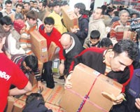 LAPTOPLAR KAPIŞILDI Aynı merkezde bulunan Teknosa mağazasının açılışında da büyük izdiham yaşandı. Vatandaşlar saat 04.00 sularında mağaza önünde sıra oluşturmaya başladı. Kapıların açılmasıyla piyasanın yarı fiyatına satışa sunulan 50 adet laptoptan almak isteyen vatandaşlar adeta birbirlerini ezdi. Kısa süreli arbede yaşandı.